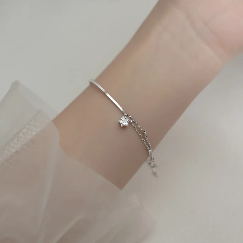 925 Sterling Silver Star Bracelet Sparkling Zircon Double Layer Round Bead Bracelet Exquisite Jewelry Birthday Gift