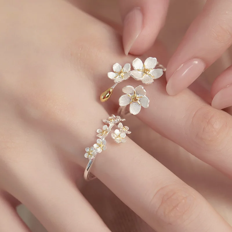 Fashion 925 Sterling Silver Flower Ring Shining Charm Exquisite Flower Ring