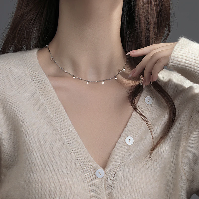Fashion Jewelry 925 Sterling Silver Tassel Beads Temperament Short Personality Clavicle Chain