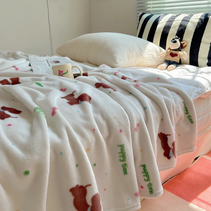 Milk plush cartoon cute printed double-sided plush blanket with multiple functions, can be used as bed sheets, lunch blankets