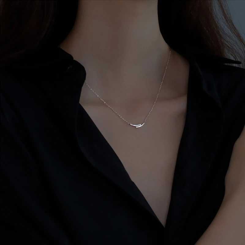 New 925 Sterling Silver Necklace Simple Clavicle Chain Shiny Zircon Geometric Pendant