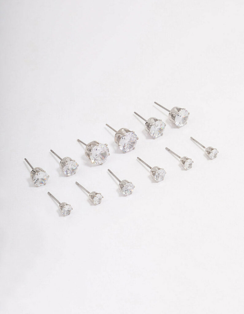 Rhodium Classic Round Cubic Zirconia Earring 6-Pack