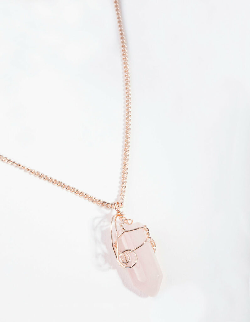 Rose Curled Rose Quartz Stone Necklace