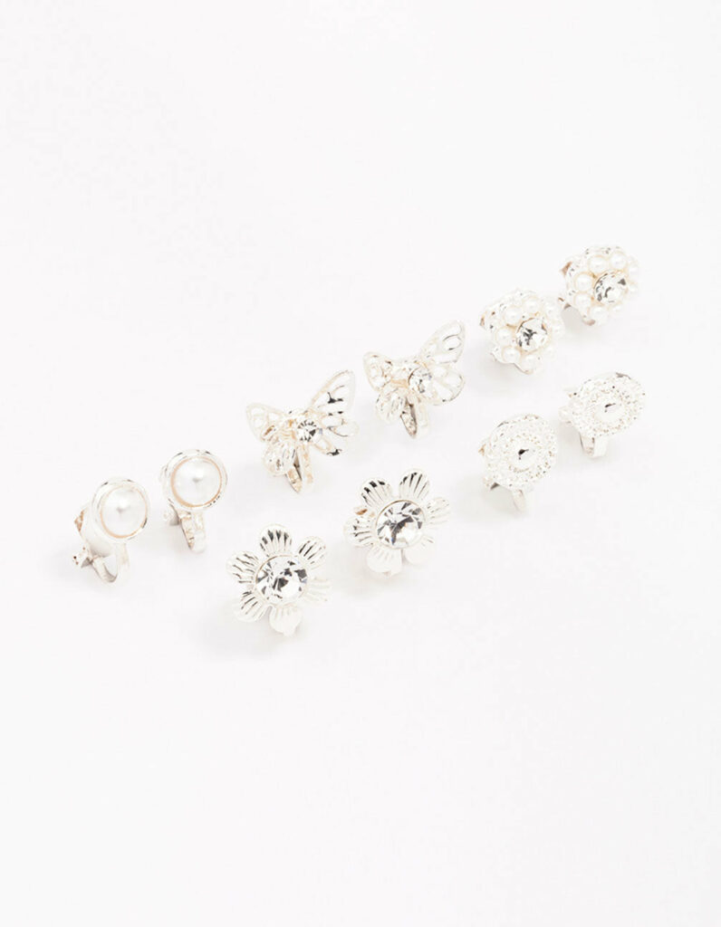 Butterfly & Flower Clip On Earring 5-Pack